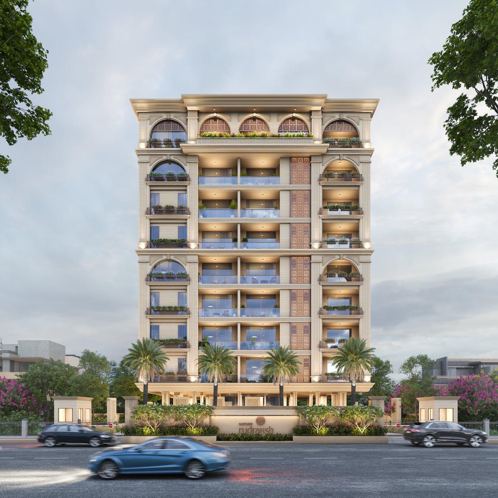 Rooted in neo-classical elegance, Rudraksh is designed as a sanctuary. Every arch, edge, and angle honors a quieter, deeper way of living.