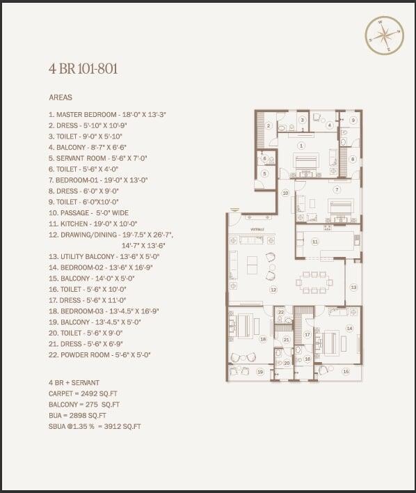 | 4 BHK | 3912 Sq.Ft. |