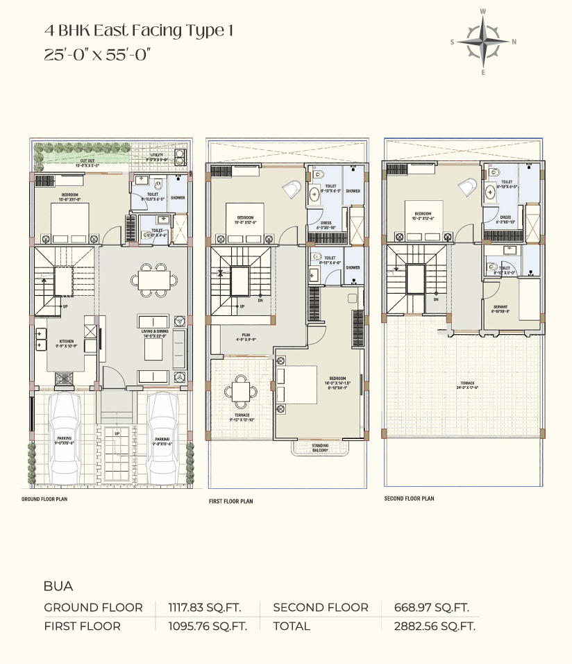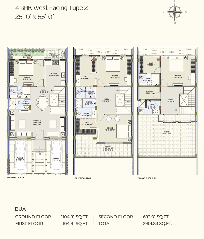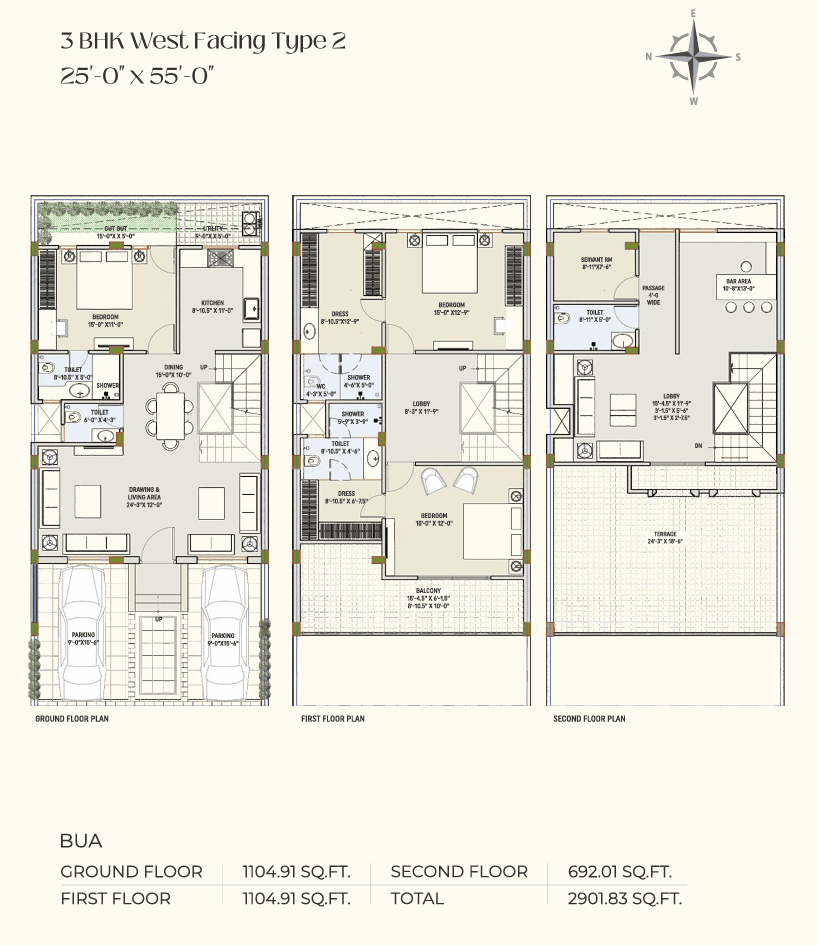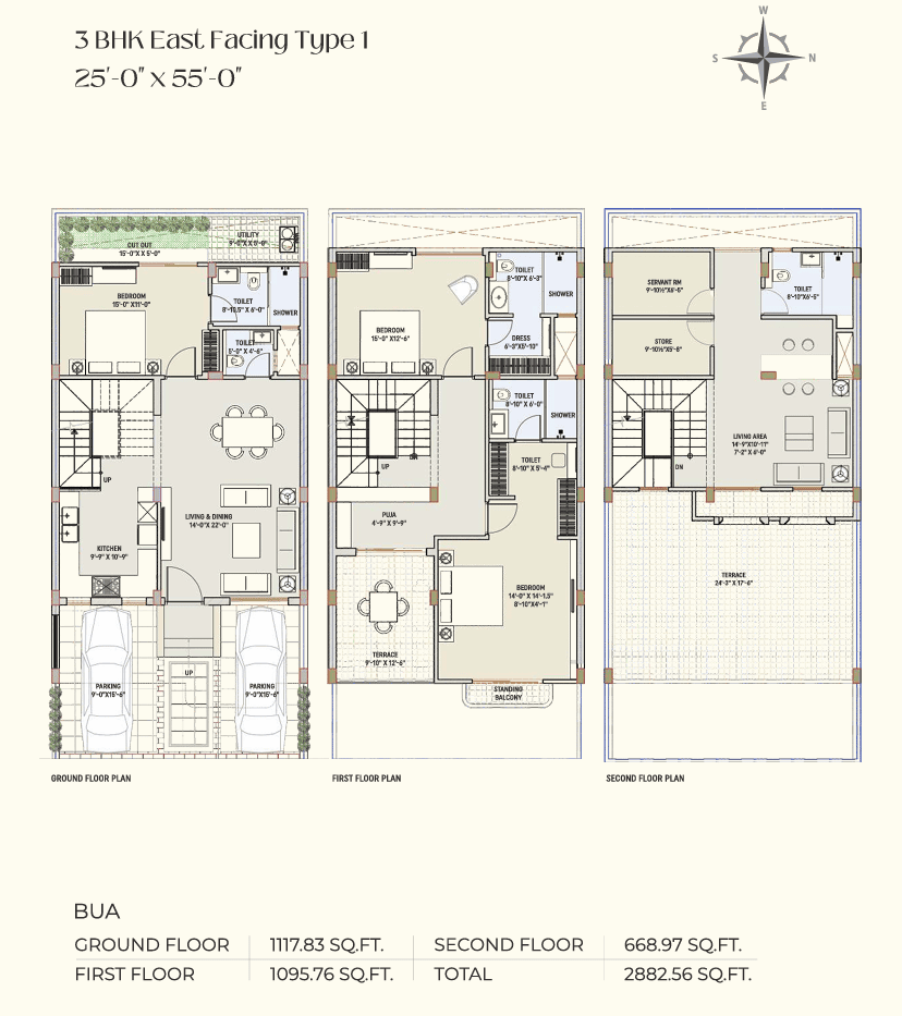 - 2 car parking per villa
